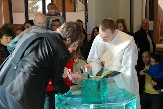 Putting on the Biermann family gown. She was the 17th child to be baptized in it.
